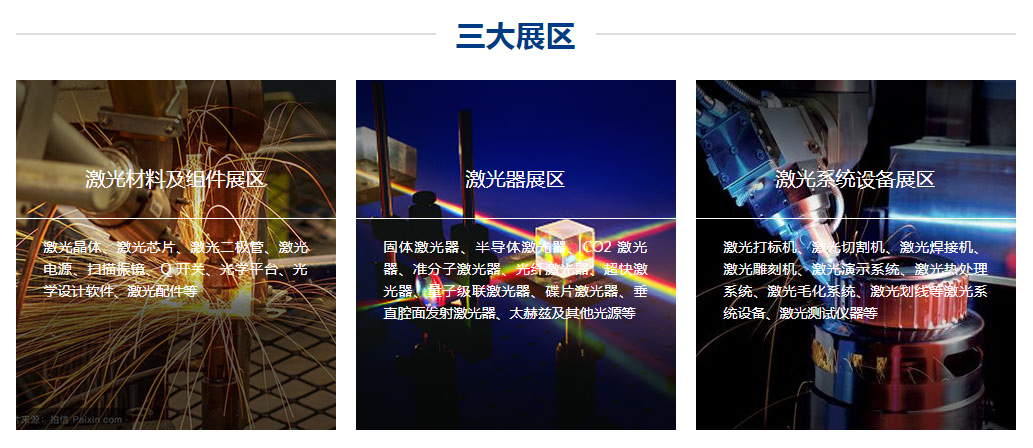 本次在線展將設(shè)激光材料及組件、激光器、激光系統(tǒng)設(shè)備三大展區(qū),將匯集各細分領(lǐng)域先進產(chǎn)品與前沿技術(shù)。