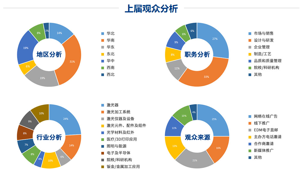 本屆在線展還將進行激光產(chǎn)品評選,主辦方根據(jù)所有參展產(chǎn)品的觀眾瀏覽數(shù)、留言數(shù)以及資料下載數(shù)等項目綜合評估,同時經(jīng)過OFweek資深編輯團隊考察參選單位的各項軟、硬實力之后,最終公開揭曉“十大最具人氣激光產(chǎn)品”評選獎項。 專業(yè)觀眾 精英匯聚